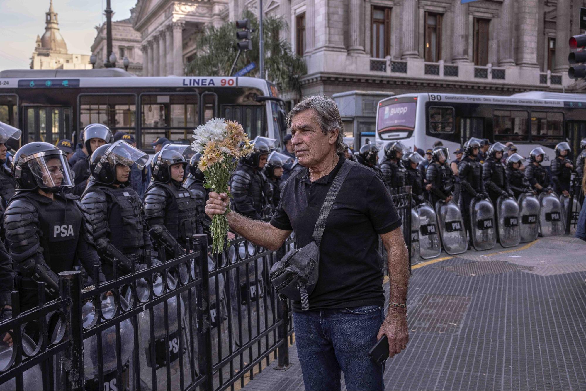 Hoy la realidad lo enfrenta a otro miedo: “Me da cierto temor ver en la tele cómo golpean a los viejos todos los miércoles”. Sabe que ese miedo no es abstracto, porque cada semana jubilados y jubiladas se concentran frente al Congreso Nacional para protestar contra los recortes aplicados por el Gobierno, especialmente en los medicamentos cuyo costo antes cubría el PAMI. Nicolás los observa con respeto: “Es muy valorable porque lo hacen por todos. Esa lucha ayuda a todos. El resultado de esa lucha va a beneficiar a todos, incluso a quienes los critican”.
